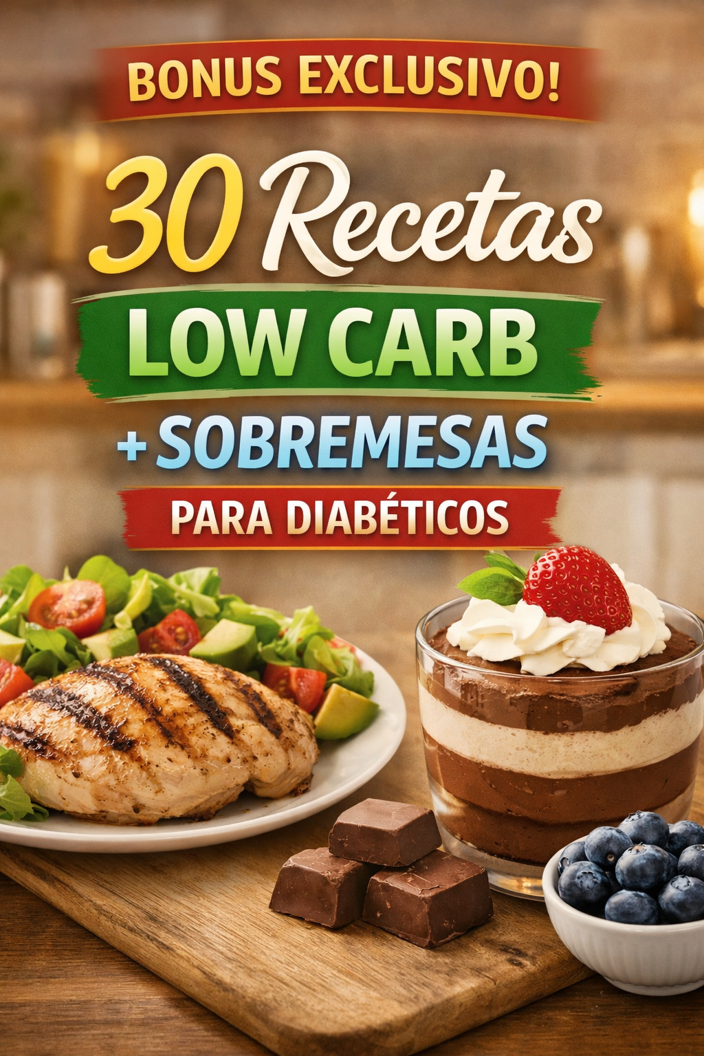 Transforma tu dieta con una guía práctica que combina sabor y salud. Incluye 30 deliciosas opciones de platos principales y dulces, especialmente desarrolladas para mantener el control glucémico sin sacrificar el placer de comer bien.